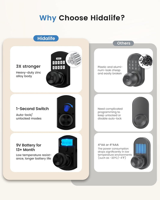 Keypad Smart Door Lock with Auto-Lock, Anti-Peeping Code & Backlit Keypad – Keyless Entry for Home or