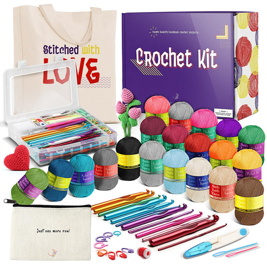 Crochet Kit for Beginners Adults and Kids, Knitting & Crochet Supplies Includes 1500 Yards Assorted Yarn