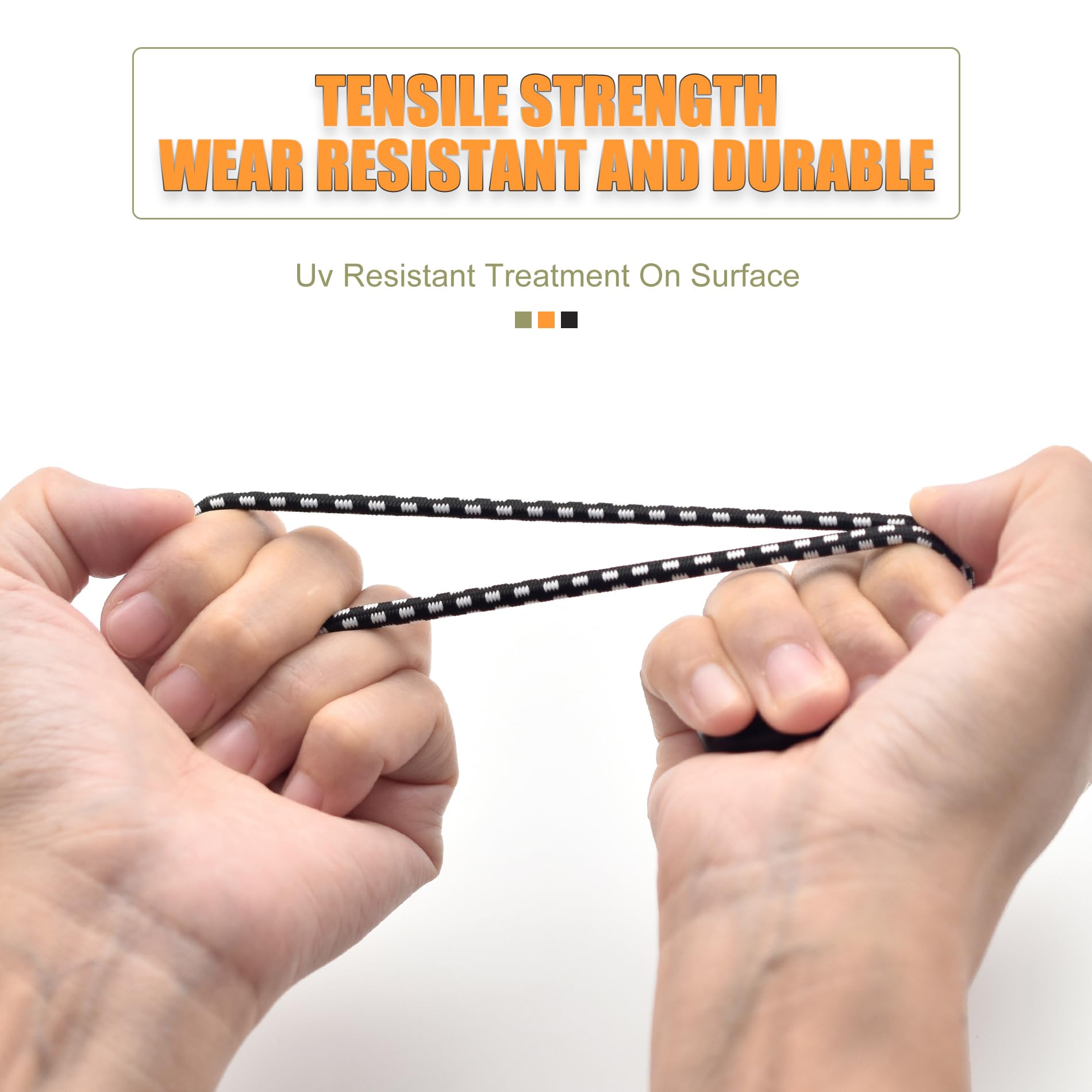 - 【Durable Material】: Each rope consists of more than 40 pieces of 100% high-quality latex, which is superior to other bungee cords in quality and function, more durable and stronger, and they will not break or split easily;