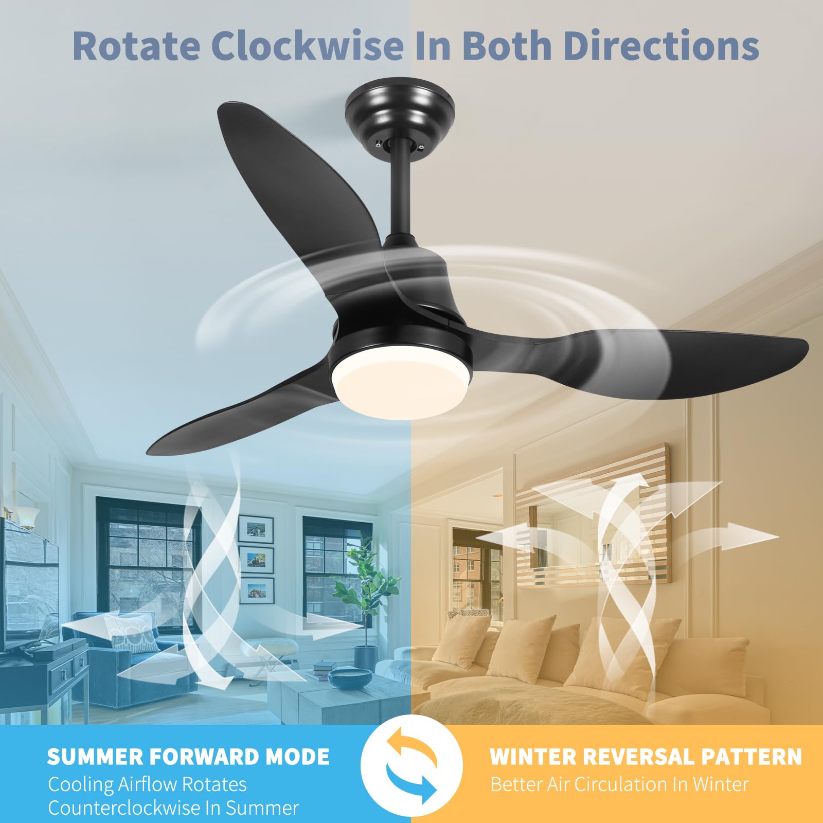 - 【DC Pure Copper Reversible Motor】- Smart ceiling fan with light alexa FCC-certified 35W silent pure copper motor. The Modern black ceiling fan motor is quiet and provides you with a cool breeze not only in the summer but also reverses to promote air circulation in the winter. The 35W motor is durable and 75% more energy efficient than other fans.