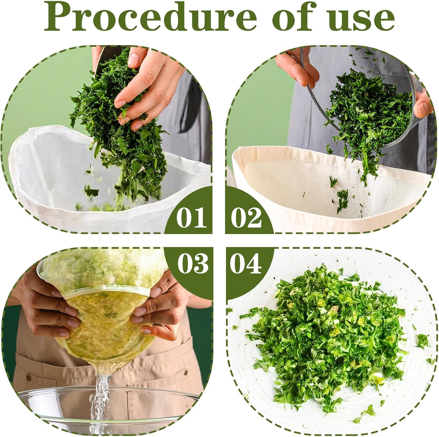 - 【Premium Material】These nut milk bags are made of high-quality, durable nylon, and the fine mesh can withstand heavy use and intense use. These cheesecloth bags are perfect for making dumpling fillings, nut milks, soy milk, brewing oatmeal, and other kitchen tasks.