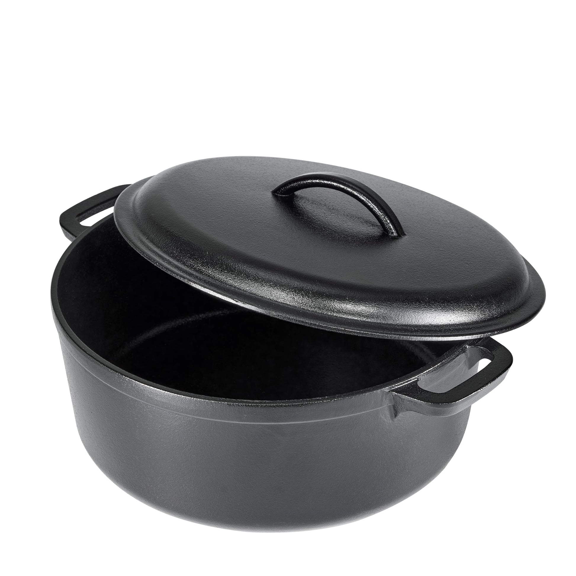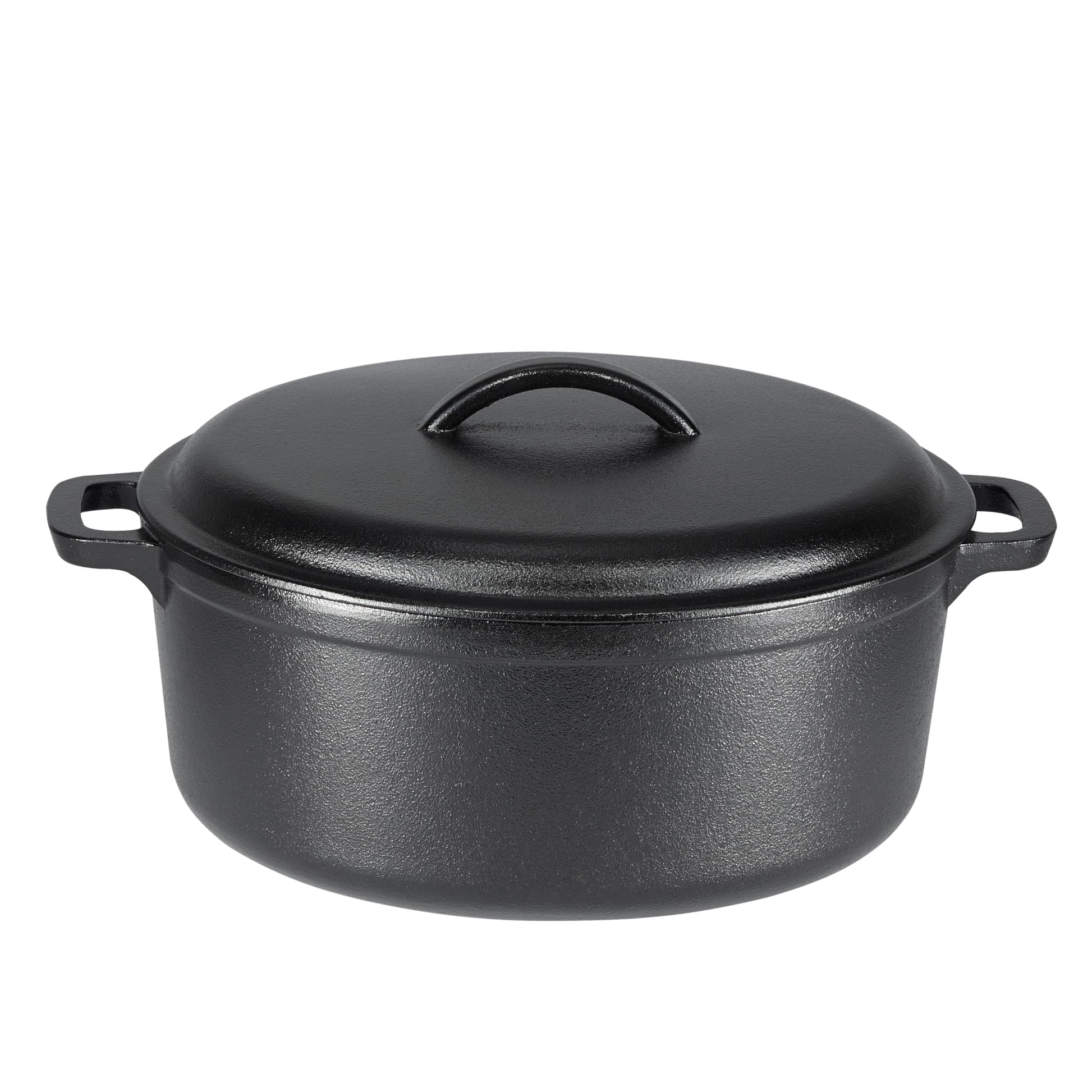 Amazon Basics Round Pre-Seasoned Cast Iron Dutch Oven Pot with Lid and Dual Handles, Heavy-Duty & Large, 7-Quart, Black