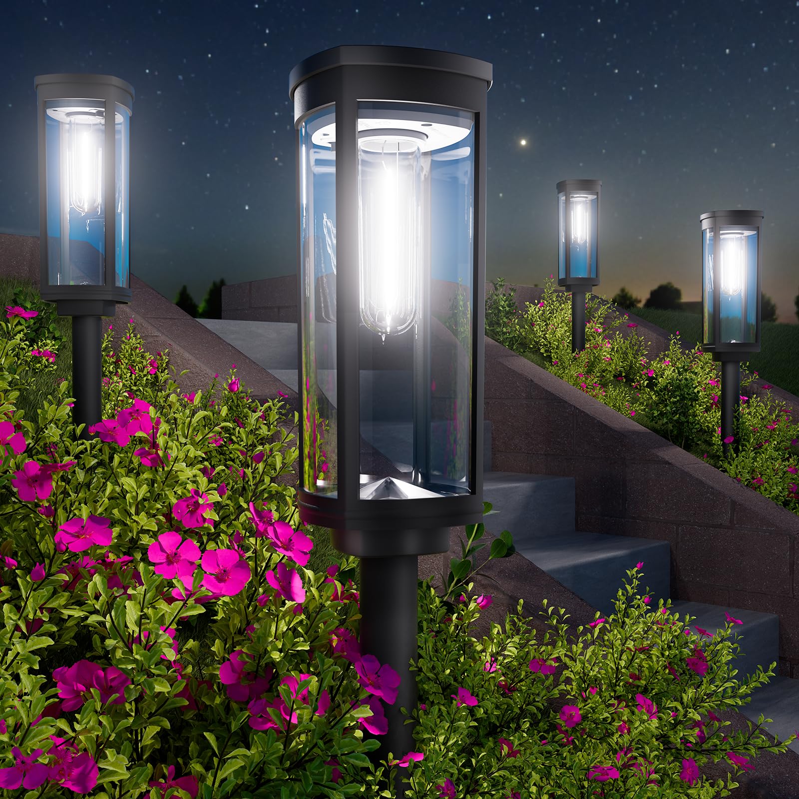 - UNIQUE & RETRO DESIGN: The bright solar pathway lights outdoor feature warm white tungsten filament bulbs placed within high transparency, thicker lampshades, making BITPOTT solar yard lights brighter and more durable than others. These waterproof solar powered landscape lights can project unique light and shadow, creating a romantic and warm atmosphere for your home.