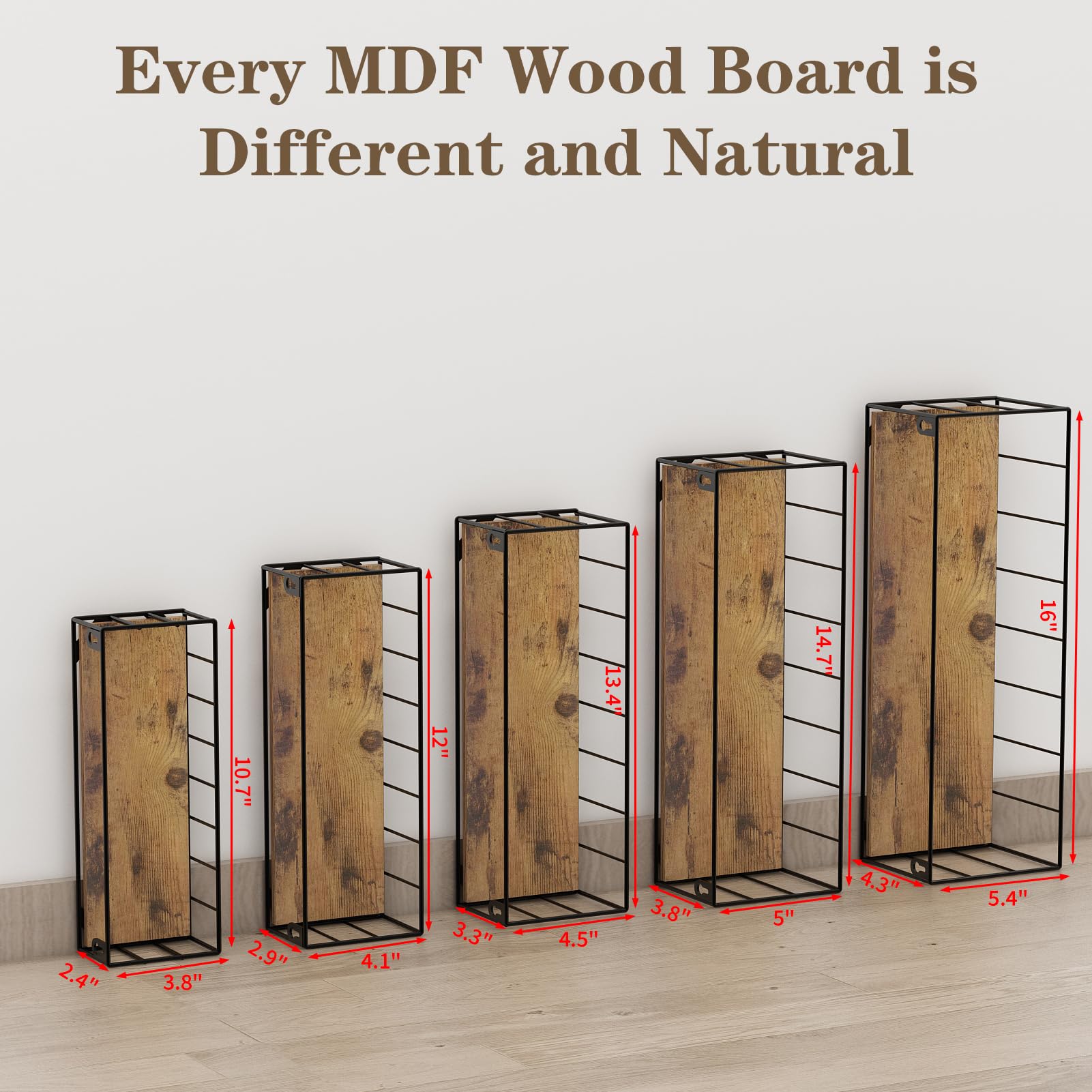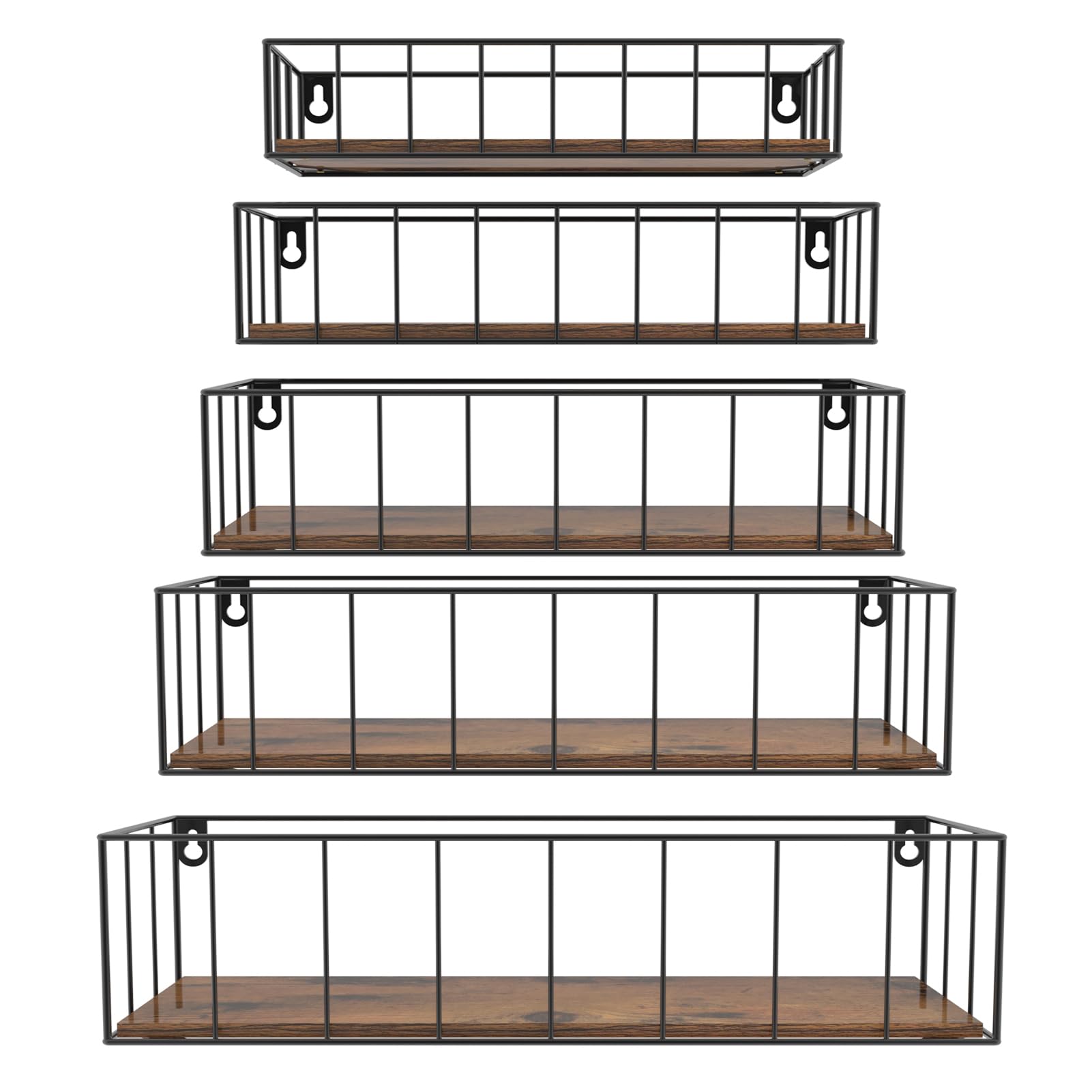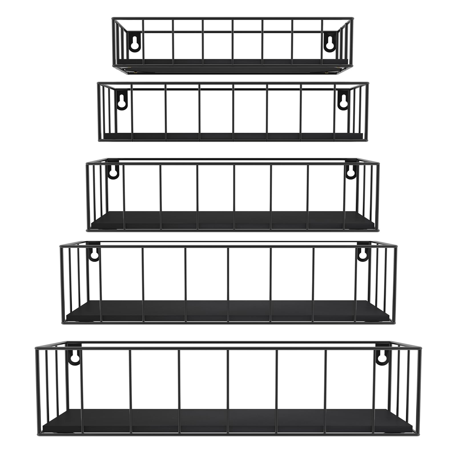 - STURDY WALL SHELVES: These hanging wall shelves are made of MDF board and black metal bracket, which are sturdy enough to hold a certain amount of stuff about 24 lb for each size of 5 wall shelves