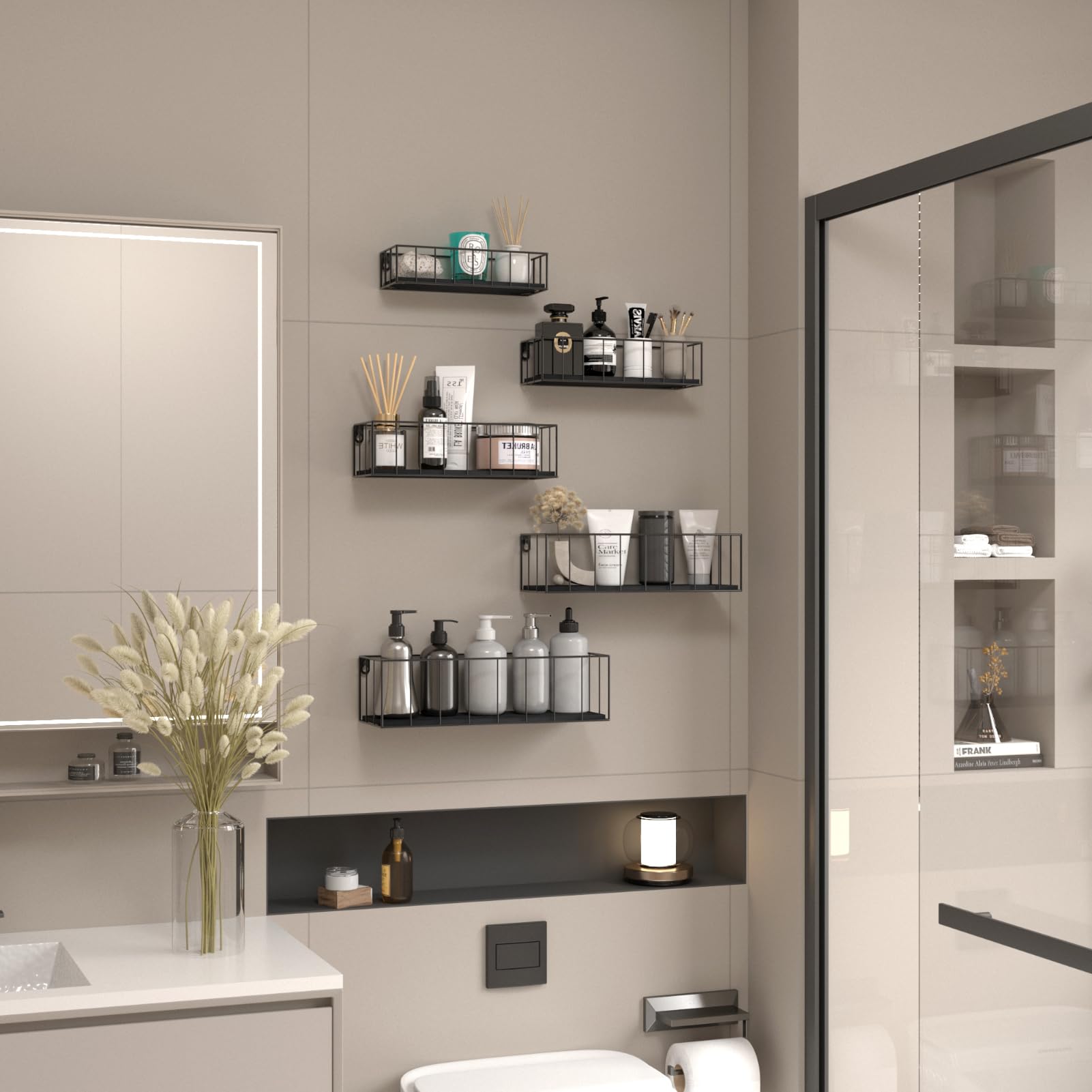 - WALL SHELF CLASSIC DESIGN: The black floating shelves with metal fences on 3 sides, which can protect the items from falling off from the wall shelves