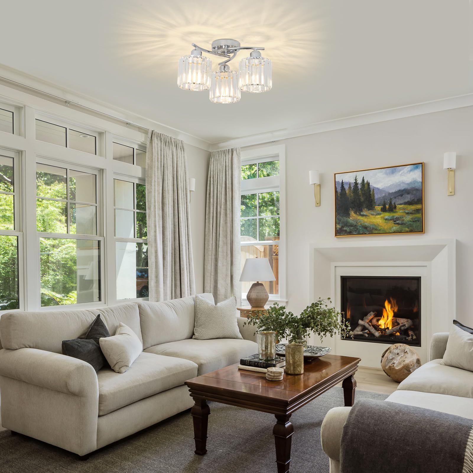 - ๐๐๐ฆ๐ข ๐ ๐ฅ๐ฎ๐ฌ๐ก ๐๐จ๐ฎ๐ง๐ญ ๐๐๐ข๐ฅ๐ข๐ง๐ ๐๐ข๐ ๐ก๐ญ& ๐๐ฉ๐๐ง ๐๐๐ฌ๐ข๐ ๐ง๏ผThe crystal ceiling light fixture is an innovative lighting solution that is perfect for spaces with low ceilings. Its unique open design ensures that light is distributed evenly, and the crystal material used allows for high light transmittance,with black light fixture metal frame,when the kitchen light fixtures are on,And the clear crystal shades create a wonderful glow to illuminate your space with some appealing style.