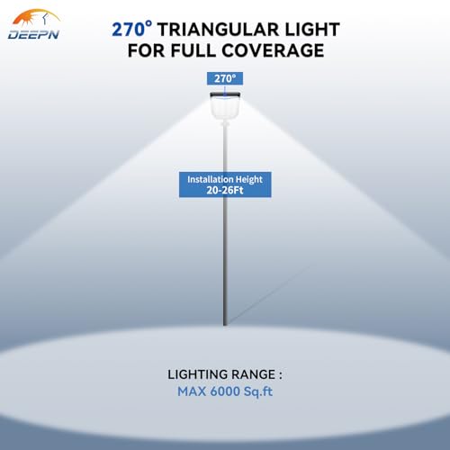 - Utral-large Solar Street Lights & IP67 Waterproof: DEEPN solar outdoor lights with newly upgraded waterproof backplane adopt high-quality ABS, die-cast aluminum frame and nanoscale waterproof coating.Its waterproof protection performance far more beyond all another solar street light in current market.