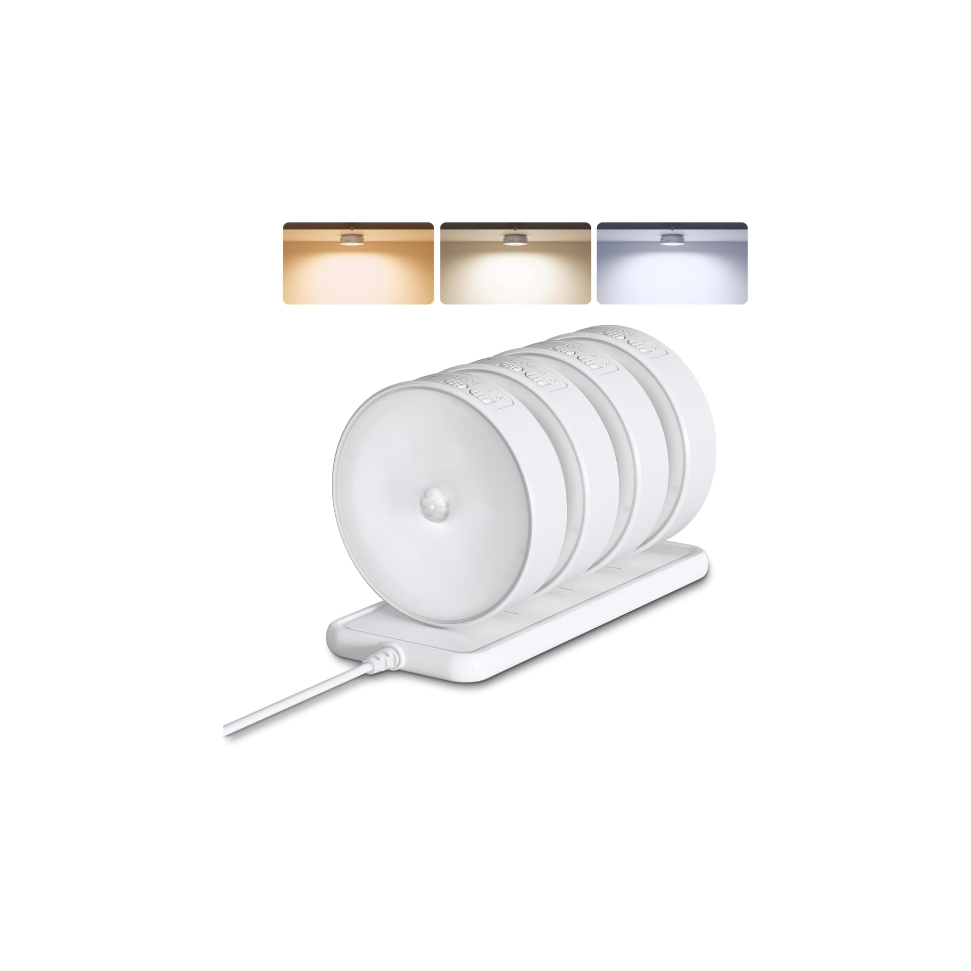 EZVALO 8 Pack Motion Sensor Closet Lights, 1200mAh Rechargeable LED Night Lights, Under Cabinet Lights, Puck Light, Dimmable, 3 Color Temps, Magnetic, Stick on for Kitchen, Stairs, Bathroom