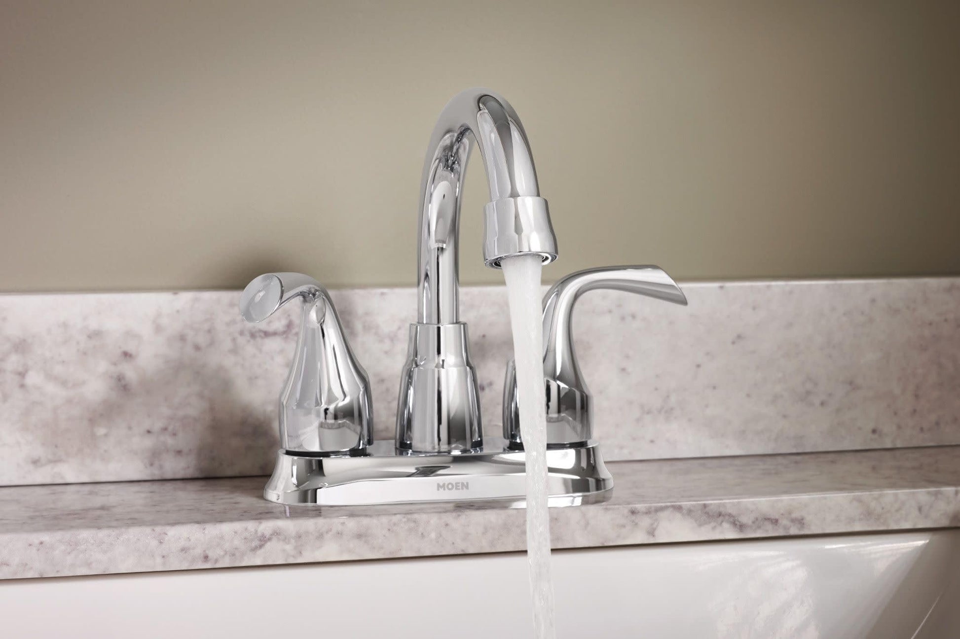 The Moen Idora Bathroom Sink Faucet is a perfect blend of style and functionality that transforms your bathroom into a modern oasis. This 4-inch Centerset Chrome faucet is designed to elevate your bathroom aesthetics while providing reliable performance. Whether you’re renovating your bathroom or simply upgrading your fixtures, this bathroom sink faucet is sure to impress with its sleek design and durable construction. The Moen Idora is not just a bathroom faucet; it's a statement piece. Its chrome finish offers a mirror-like look that complements any bathroom decor, from contemporary to traditional. This centerset faucet is designed for easy installation on a 3-hole sink, making it a versatile choice for any bathroom setup. The faucet's smooth, curved lines and ergonomic handles provide a comfortable grip and effortless water control, ensuring a seamless user experience. With its water-efficient design, it helps you conserve water without compromising on performance, making it an eco-friendly addition to your home. Experience the perfect combination of style and practicality with the Moen Idora Bathroom Sink Faucet. This faucet for bathroom sinks is engineered to withstand the test of time, thanks to its high-quality materials and robust construction. It is not only a beautiful addition to your bathroom but also a reliable one, backed by Moen's limited lifetime warranty.