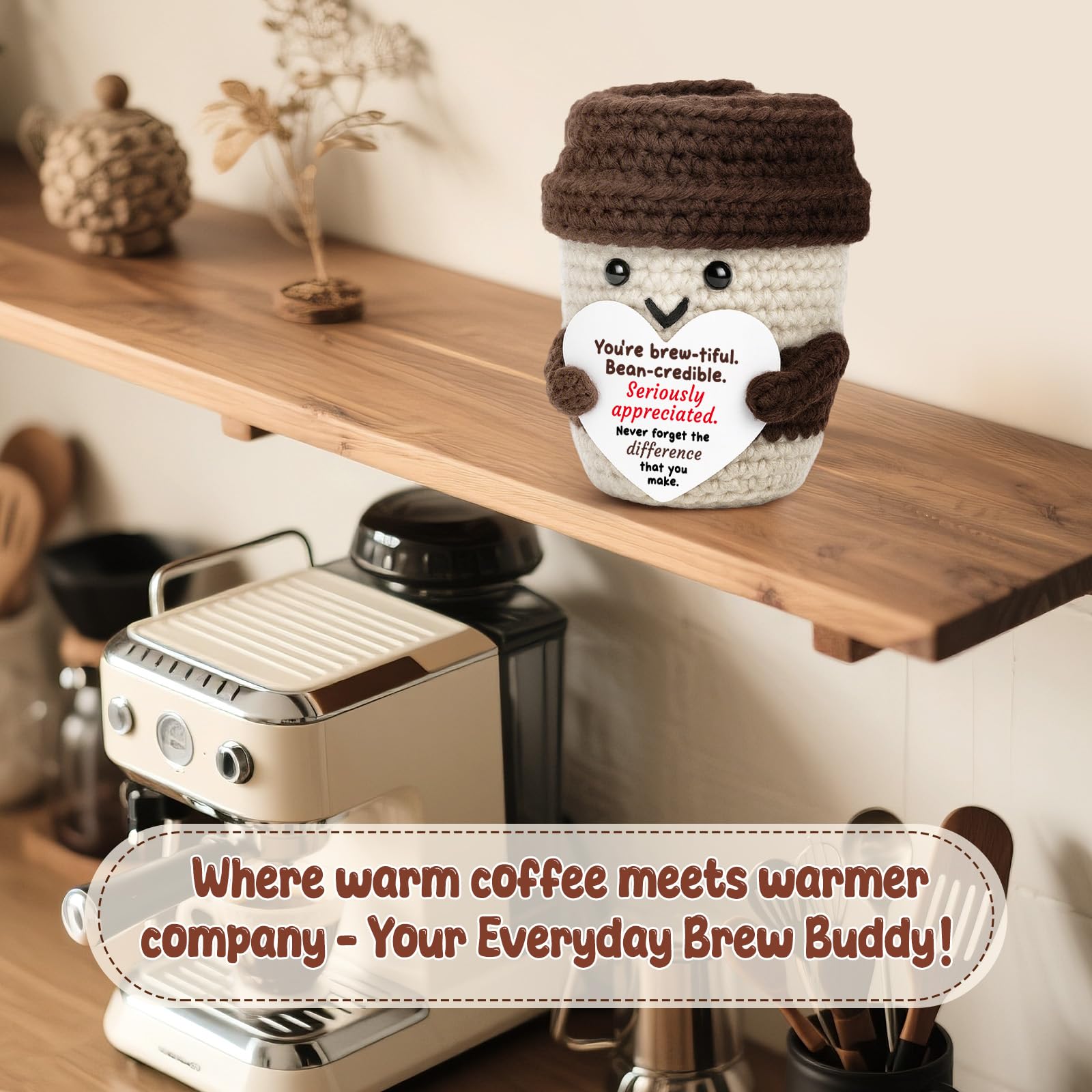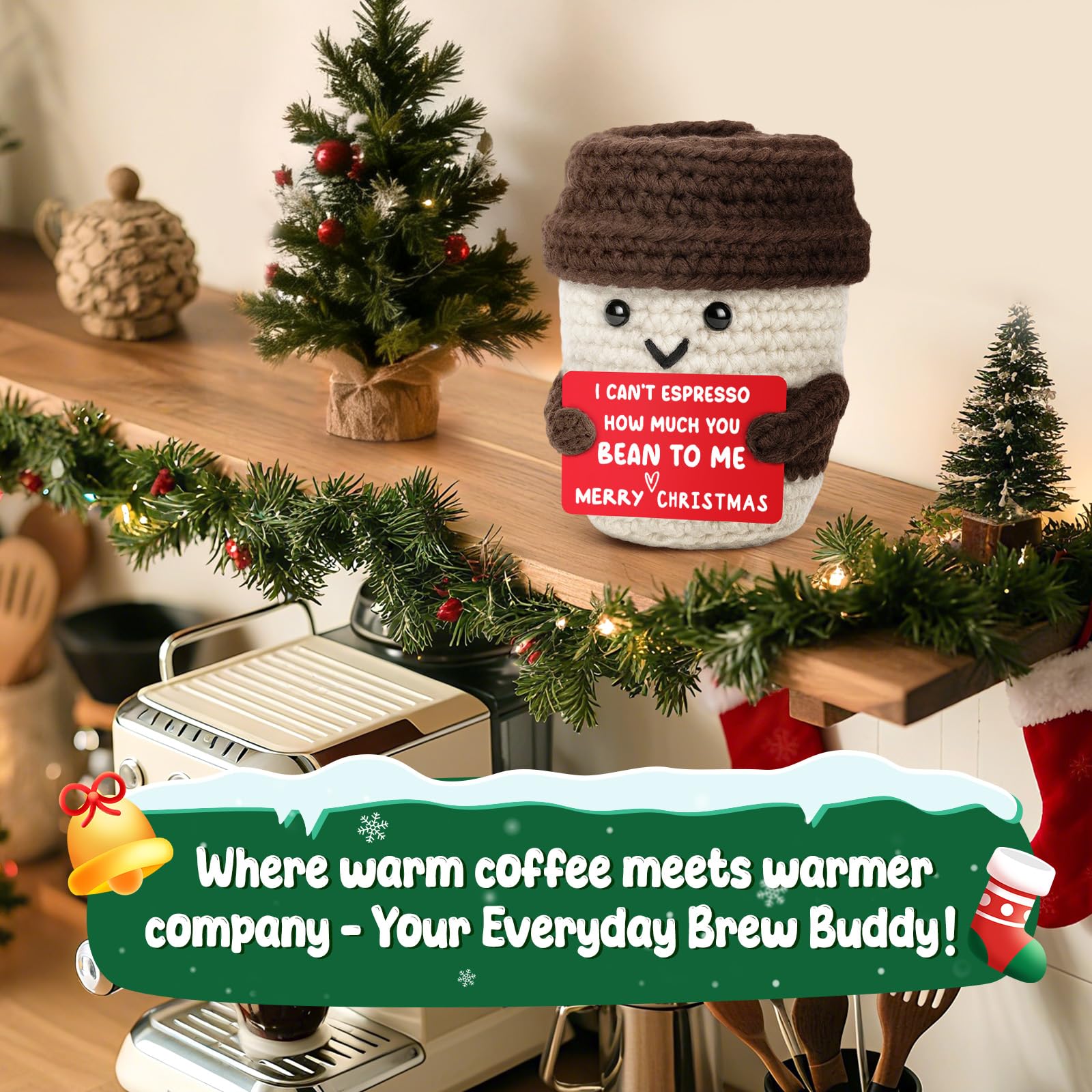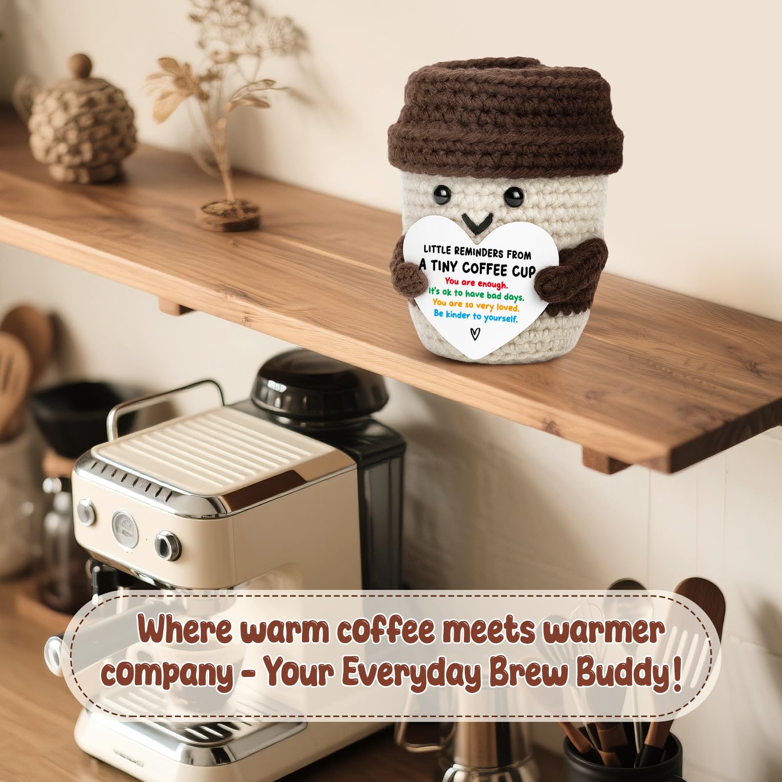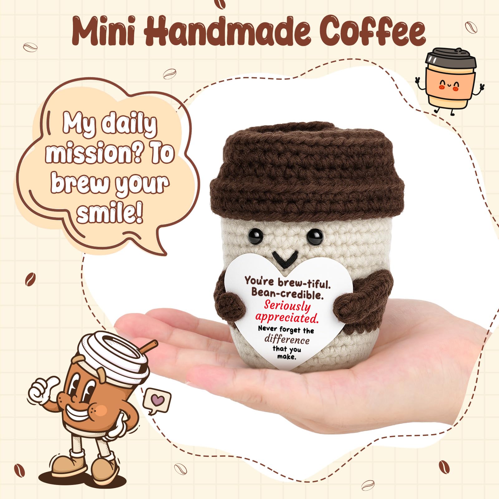 - Crochet Coffee Mug for Coffee Lover Best Friend :This exquisitely hand-knitted coffee cup doll is more than a charming decor piece—it's a warm and enduring symbol of your love and best wish. Whether placed on a desk, shelf, Christmas tree ornament, or a secret Santa surprise. So every time they see it, they'll remember just how much your love and best wish.