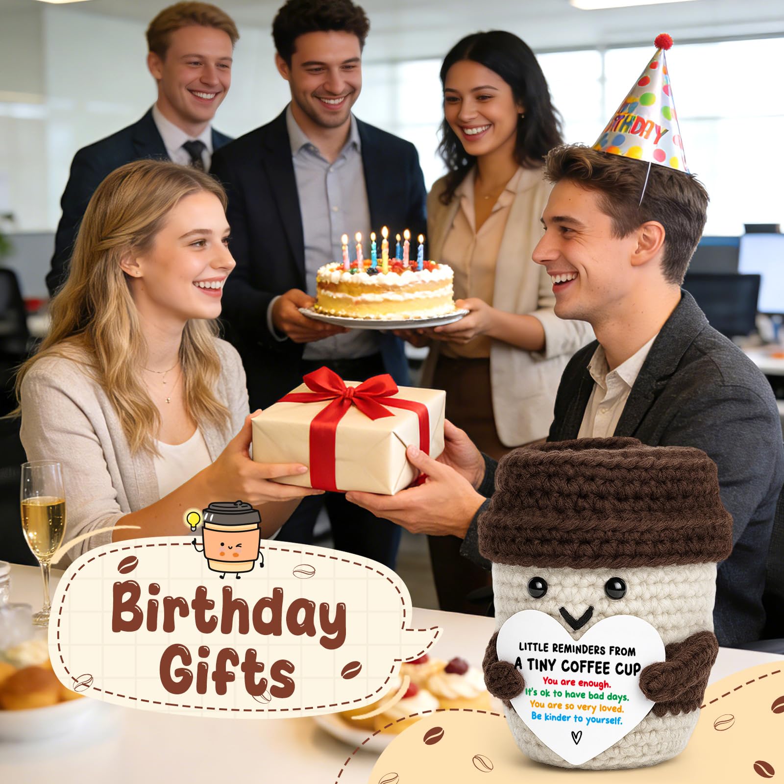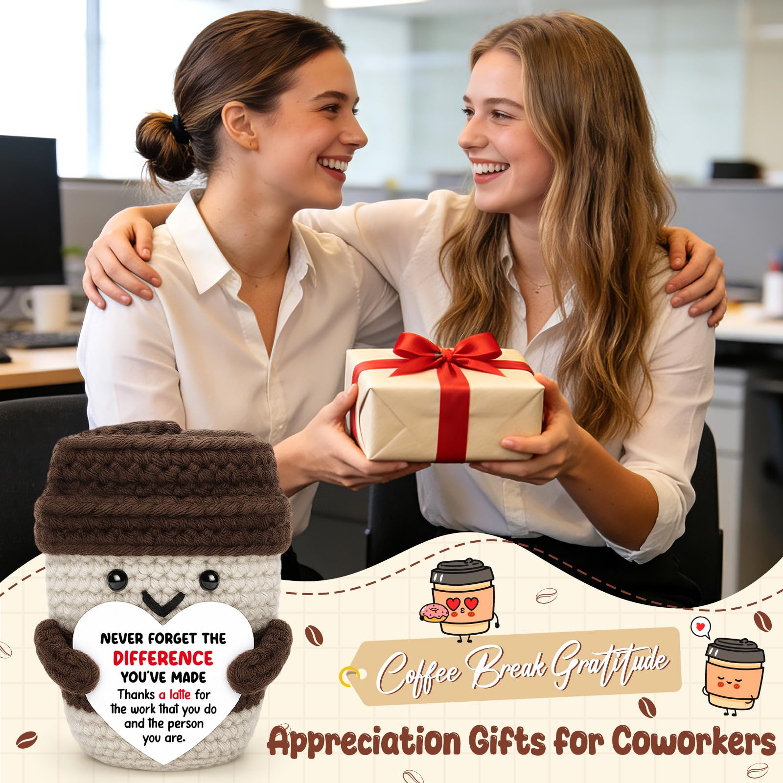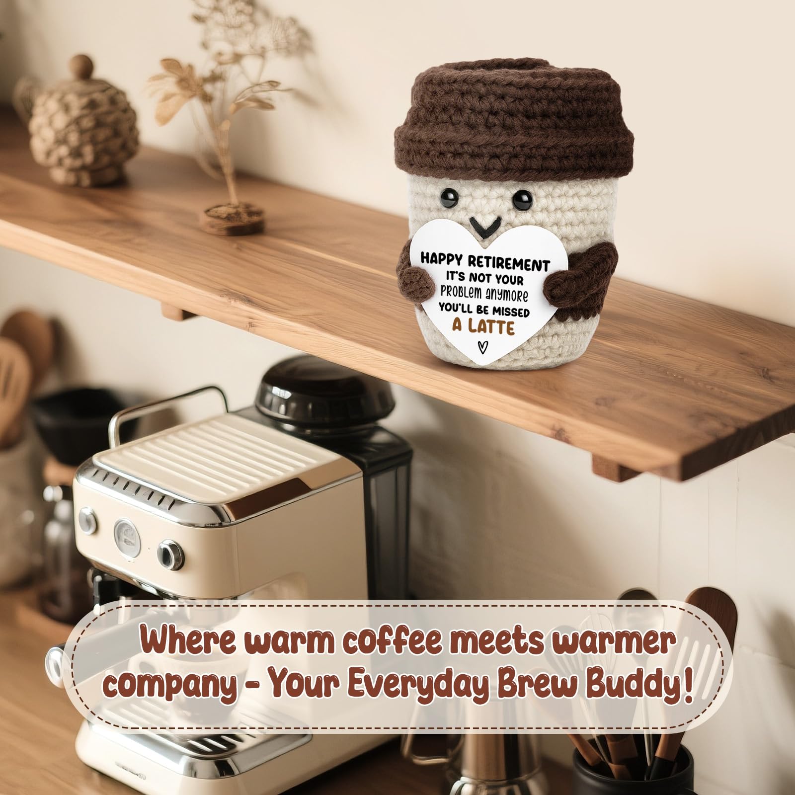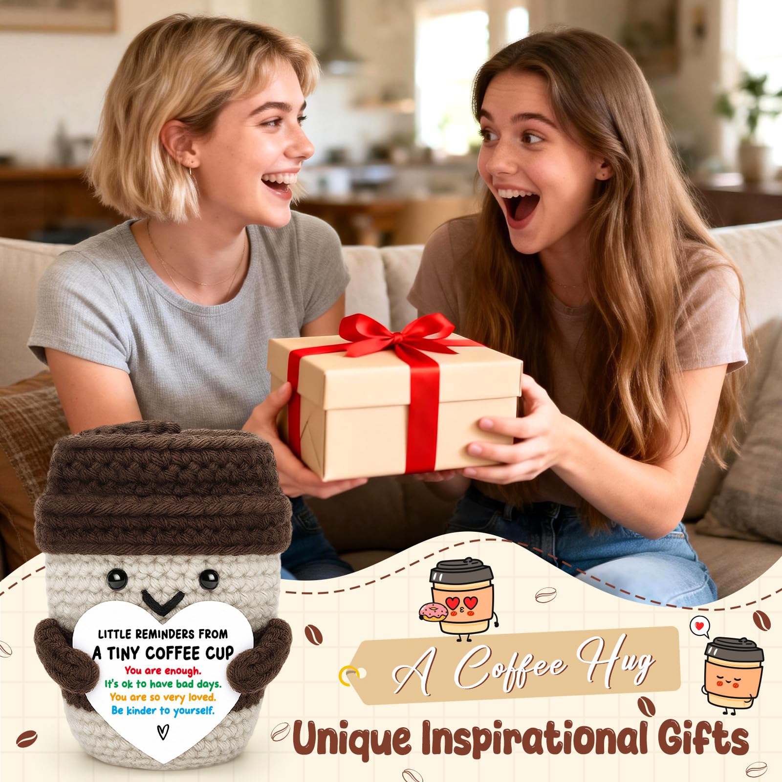- Crochet Coffee Mug for Coffee Lover Best Friend :This exquisitely hand-knitted coffee cup doll is more than a charming decor piece—it's a warm and enduring symbol of your love and best wish. Whether placed on a desk, shelf, Christmas tree ornament, or a secret Santa surprise. So every time they see it, they'll remember just how much your love and best wish.